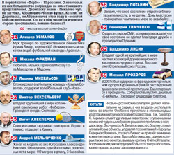 В первой сотне «Форбс» - 10 россиян. О некоторых из них большинство сограждан не имеет никакого представления. Дерипаску знаем - Пикалёво чуть не загубил, Абрамович «Челси» купил. Кстати, ни Дерипаска, ни Абрамович в этом году в «золотой список» не попали. Кто же в нём числится и чем эти «герои» прославились помимо бизнеса?