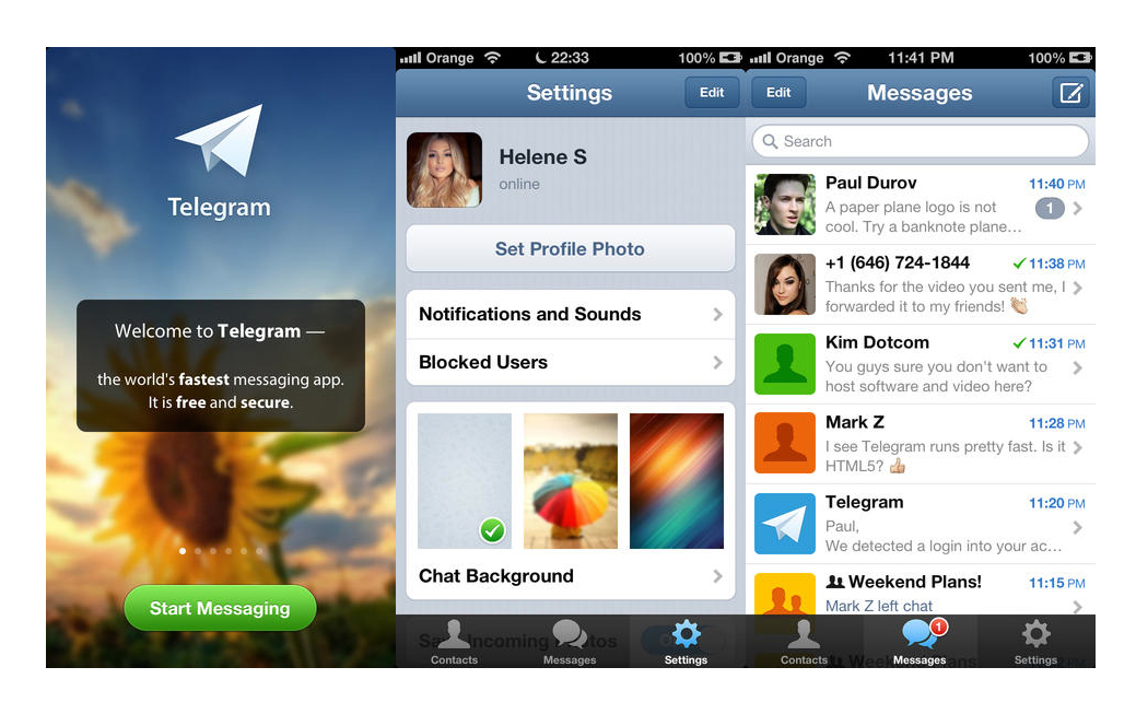 Американская компания Digital Fortress, которая принадлежит основателю социальной сети «В контакте» Павлу Дурову, на днях выпустила мобильный мессенджер Telegram. Как и WhatsApp, приложение для iPhone дает возможность переписываться с друзьями в чатах через интернет, а не с помощью смс. Так, даже если вы находитесь в роуминге, вы можете бесплатно писать знакомым.