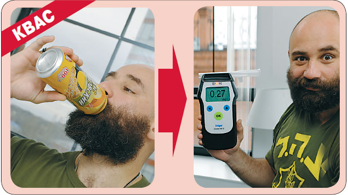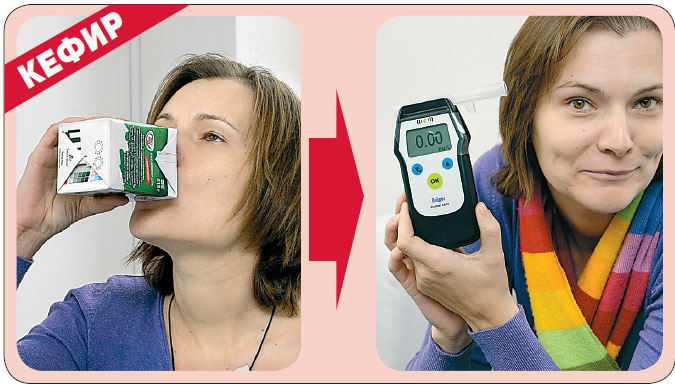Тщательно рассмотрев бутылку, мы нашли на ней пометку: «Квас содержит 0,5% алкоголя». Его обязательно содержит «правильный» квас, приготовленный по классической технологии брожения. Но, оказывается, даже этого достаточно, чтобы дыхание было уже «несвежим»? Мы проверили показания спустя 10 минут: у обоих испытуемых алкоголь выветрился и алкотестер показывал 0,0 промилле. Не обнаружилось следов алкоголя и позднее - спустя полчаса и час после эксперимента. А значит, глотнув кефира, всё же можно сразу садиться за руль, а вот выпив кваса, стоит выждать некоторое время.