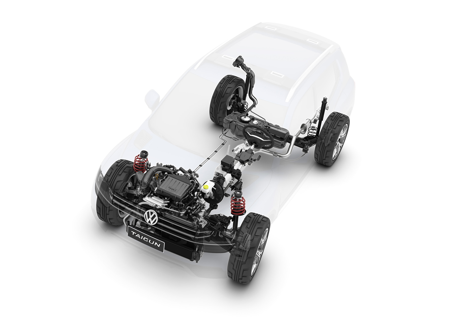 Четырёхместный концепт-кар оснащён новым 1,0-литровым двигателем TSI мощностью 110 лошадиных сил. Двигатель Taigun расширяет линейку трёхцилиндровых бензиновых двигателей, добавляя прямой впрыск топлива и турбонаддув, которые делают его очень экономичным.