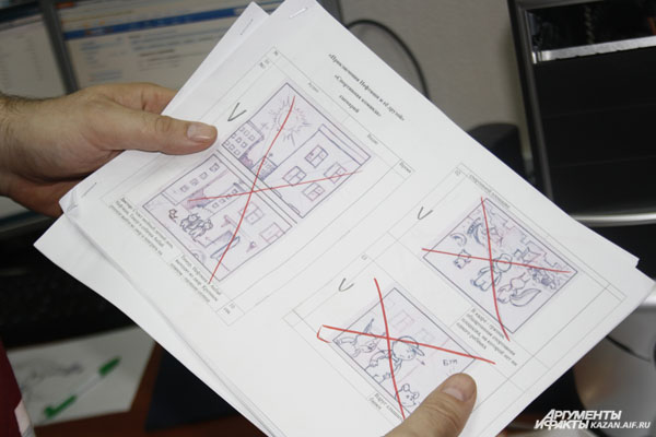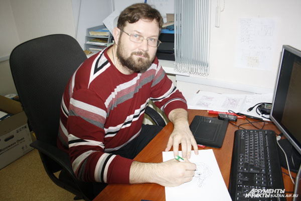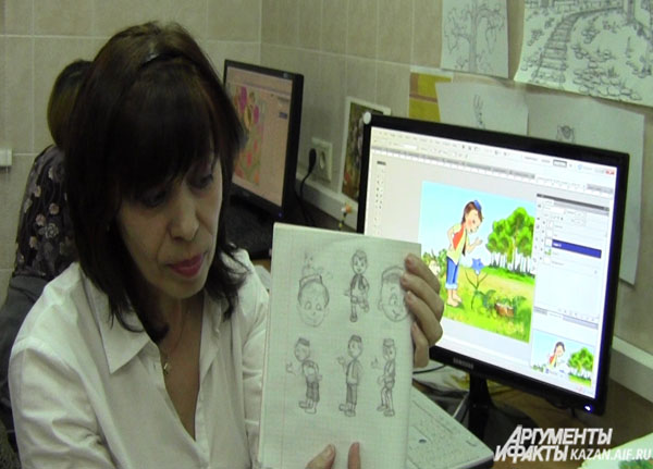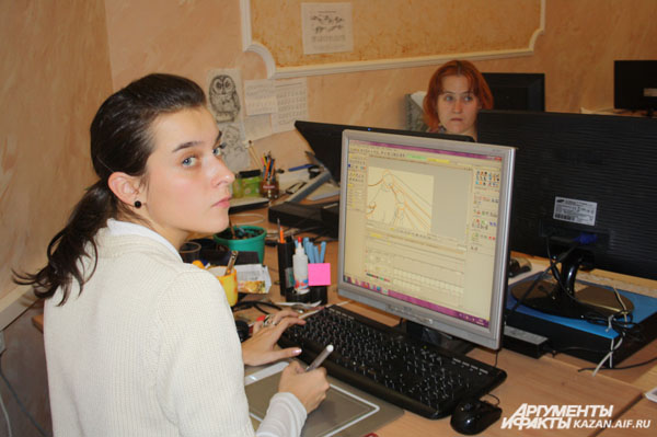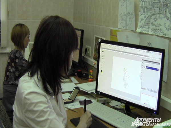 Героев мультфильмов рисует каждый художник студии. «Получается около 30 вариантов, из которых вместе выбираем лучшего. Над ним и работаем. Нам больше нравятся отрицательные персонажи — они более характерные. Например, Див из «Кисекбаша» (злой колдун из старинной казанской легенды — прим. ред.)», — поясняет аниматор Денис Садыков.