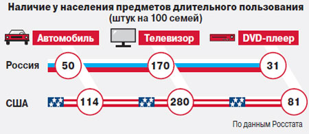 - Уровень жизни в нашей стране и США, безусловно, несопоставим. Да, за последние годы в России сократилось количество живущих за чертой бедности, и этот показатель у нас теперь, как во многих странах мира, не превышает 15% от численности населения. Но бедный в США и бедный в России - это два разных понятия. Самый простой способ оценить, насколько мы беднее, - посмотреть на потребление тех или иных продуктов питания на душу населения.