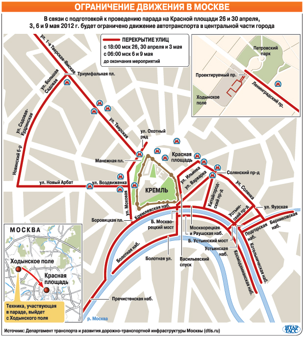 Для ветеранов 6 мая пройдёт большой концерт в Театре Российской армии, 8 мая награды и подарки им вручат в Концертном зале им. Чайковского. А 9 мая 500 московских фронтовиков (всего в столице их сегодня проживает 193 441 чел.) приглашены на Красную площадь в качестве зрителей Парада Победы. (Как перекроют центр города - см. инфографику ниже.) Из префектур почётных гостей привезут на автобусах, а по брусчатке до трибун доставят на электромобилях.