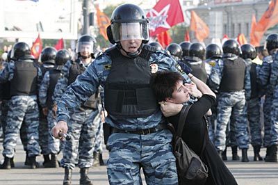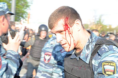 Спустя некоторое время со сцены на Болотной было объявлено, что большую часть выступающих и активистов не пустили на площадь; люди, уже успевшие пройти к месту организации митинга, сломали рамки металлоискателей и прошли к кинотеатру, где проходила забастовка; одновременно начались первые конфликты с ОМОНом. Около 18.00 анархисты попытались прорвать ограждение и пройти на Большой каменный мост, в результате чего начались крупные столкновения протестующих с ОМОНом, а также массовые задержания. Поступало множество сообщений о том, что задержания проходят очень жестоко: полицейские пускали в ход дубинки, кулаки, ноги и слезоточивый газ «Черемуха»; в ответ в головы сотрудникам ОМОНа полетели бутылки и прочий мусор.