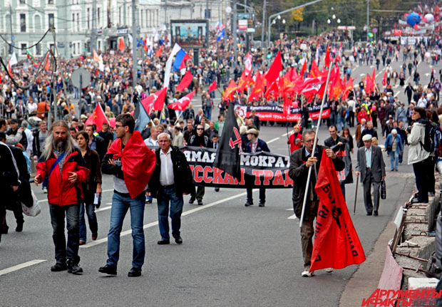 Третий московский «Марш миллионов», стартовавший в 13:30 от станции метро «Пушкинская» и прошедший по Бульварному кольцу до проспекта Академика Сахарова, по оценкам МВД собрал около 14 тыс человек и фактически закончился в 18:00. Коммунисты, требующие повернуть время вспять, аккурат до СССР, националисты, от митинга к митингу радеющие за Россию для русских, ЛГБТ, извечно жалующиеся на ущемление своих прав – все они прошли по заявленному маршруту под лозунгами «Жулики и воры, пять минут на сборы!», «Россия без Путина», вспомнили строки из песни Pussy Riot, и сформулировали новый слоган по информационной повестке дня: «Серая тля, вон из Кремля».