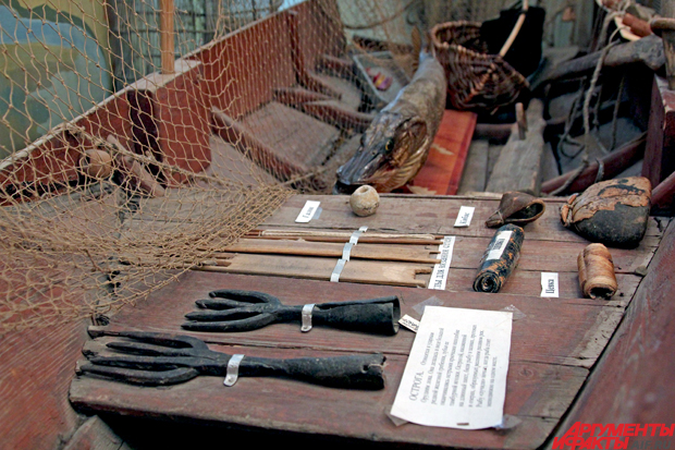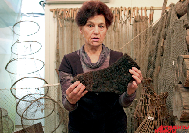 «Рыбалка и охота в этих землях остались до сих пор, да особый ангарский говорок, – рассказывает Брюханова. – Мужчины большую часть времени проводили на охоте в тайге, а женщины занимались рыбалкой. Да и сейчас занимаются. Зимой даже подлёдным ловом. Вот камень, зашитый в бересту – это грузило, по-ангарски называется «кибас», «кибасья».
