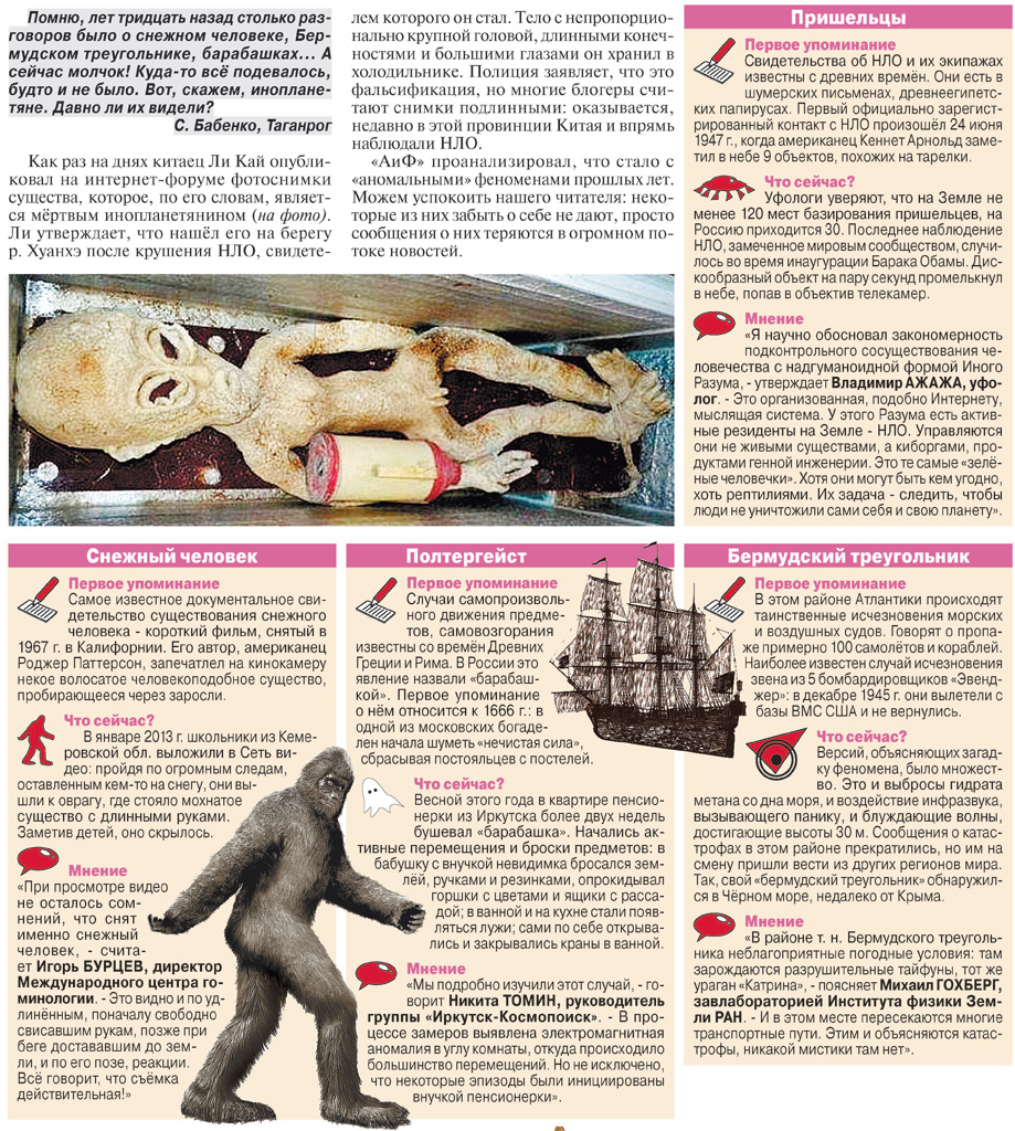 «АиФ» проанализировал, что стало с «аномальными» феноменами прошлых лет. Можем успокоить нашего читателя: некоторые из них забыть о себе не дают, просто сообщения о них теряются в огромном потоке новостей.