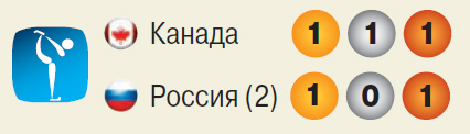 | 4. | Канада (1) | 7 | 9 | 10 | 26 |