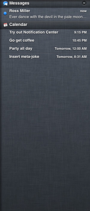 Пользователи Mac привыкли к уведомлениям от программы Growl, поэтому встроенный Центр уведомлений (Notifications Center) в «Горном льве» некоторым может показаться разочаровывающим. Но стоит потратить несколько минут, и станет ясно, что он не так примитивен, как кажется. Сообщения появляются в правом верхнем углу экрана в виде баннеров, которые автоматически пропадают через 5 секунд, или уведомлений, требующих от пользователя ответной реакции. В правой части панели меню предусмотрена иконка, которая подсвечивается синим, если поступили новые уведомления. При нажатии на нее открывается Центр, прекрасно знакомый пользователям iOS. Попасть в него можно и проведя двумя пальцами по трекпаду от правого края, а покинуть — аналогичным движением слева направо. Настройки Центра осуществляются почти так же, как в iOS: можно выбрать иконки, звуки, есть возможность сортировать уведомления вручную или автоматически по времени появления. При этом по гибкости настроек до Growl программа пока не дотягивает: например, переместить сообщения из правого верхнего угла экрана нельзя. Apple утверждает, что так и задумано: пользователь должен знать, где искать уведомления после того, как они пропали, но, возможно, компании просто стоило бы переманить кого-нибудь из разработчиков Growl.