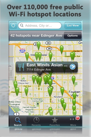 Free Wi-Fi Finder ищет бесплатные точки доступа, к которым можно подключиться, чтобы срочно проверить почту, обновить статус в Facebook или загрузить фотографию в Instagram. Несмотря на все обещания сотовых операторов, GPRS-роуминг в подавляющем большинстве стран до сих пор стоит столько, что чужой бесплатный Wi-Fi — это единственный способ выйти в Интернет за пределами России. В память приложения заложены координаты 145 тысяч бесплатных точек доступа по всему миру (включая Москву и Санкт-Петербург). И этот список пополняется ежедневно. Точки доступа можно сортировать (например, выбирать те, которые находятся в кафе) и заносить в список избранных. Для работы Free Wi-Fi Finder доступ в Интернет, конечно, не требуется — приложение определяет местоположение при помощи вышек сотовой связи. У Free Wi-Fi Finder есть аналог — Wi-Fi Finder. Как можно понять из названия (разработчики отбросили слово Free), эта программа ищет не только бесплатные, но и платные точки доступа. Их в базе около 500 тысяч. |