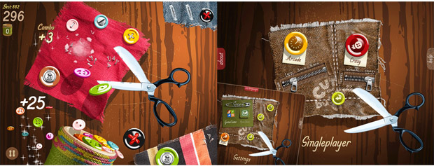 Конечно, на ткани встречаются не только пуговицы обыкновенные, а, например, и такие, которые привинчены шурупами. Срезать их не получится. Есть возможность играть левой рукой, если вы левша. Авторы игры советуют учиться срезать сразу несколько пуговиц, это дает больше баллов и больше шансов не упустить ни одну из виду. Если до этого вы самозабвенно складывали шарики в ряд, срезать пуговицы вам тоже понравится.