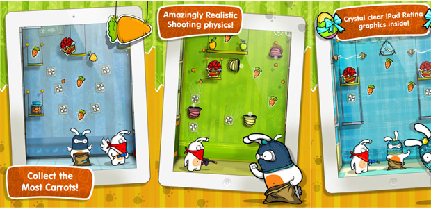 Robber Rabbits – это милая игра про кроликов, которые очень любят морковное мороженое и всячески пытаются его получить. Правда, мороженое кто-то оставил очень высоко, и героям приходится стрелять из настоящего оружия, чтобы оно упало, да желательно не куда-нибудь, а в мешок! И пока оно будет лететь вниз, нужно еще исхитриться собрать волшебные морковки, разбросанные по пути.