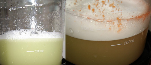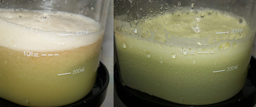 После «морковной драмы» настаёт черёд белокочанной капусты. Опять же, режу её на небольшие кусочки — чтобы проходили в загрузочное отверстие JuicePresso. На сок идёт четвёртая часть небольшого вилка. Кочерыжку не вырезаю. Льётся сок довольно интенсивно, в «носике» скапливается много пены. Результат — около 300 мл капустного сока (полезен, например, при язве желудка, можно смешивать с другими соками). Отправляю столько же капусты в универсальную соковыжималку и с удивлением обнаруживаю, что сока получается меньше, но не намного — за 200 мл. И всё же, пусть и с небольшим преимуществом, но JuicePresso «капустную битву» выигрывает. Но «томатным задором» опять даже не пахнет.