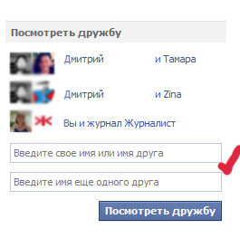 Кстати, в правой колонке на страничке дружбы вы увидите форму, куда можно ввести имена двух ваших друзей и посмотреть уже их дружбу.