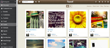 Практически неизвестный, по крайней мере в России, сервис, который сделал из Instagram интересную веб-версию. Не знаю, что об этом думают в самом Instagram, но сейчас это точно лучшая «экранизация» фотографий ваших друзей в вебе и на iPad. Картинки вместо длинной ленты превращаются в шахматную доску, как в Pinterest, под фотками сразу видны комментарии пользователей, а левое меню позволяет смотреть изображения по темам: бренды, звезды, мода, еда, путешествия и т.д.