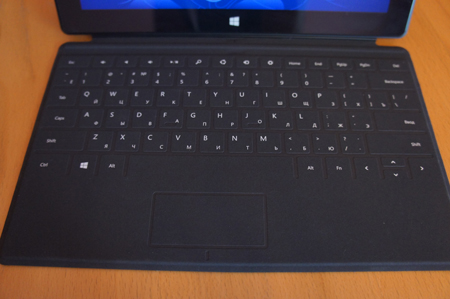Клавиатура идет в комплекте не с каждым устройством, но ее можно купить и отдельно. Есть два вида клавиатуры – Touch cover (в белом, черном и голубом цвете, в американских магазинах бывает еще и розовая, она же выполняет и роль защитного чехла), и Type cover (черная). У меня на тестировании была первая. Она – как будто с нарисованными клавишами, вторая – с механическими. В Microsoft уверяют, что Touch cover – водонепроницаемая, идеально для тех, кто любит оставлять чашки с чаем на рабочем столе (пользователи MacBook, например, после таких инцидентов сразу идут в сервис).