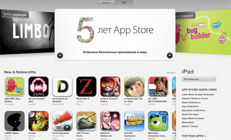 Стив Джобс представил AppStore 10 июля 2008 года. В магазине, аналогов которого еще не существовало в природе, было представлено 500 программ, из которых более 125 были бесплатными. Речь тогда шла только об iPhone, iPad появился позже.
