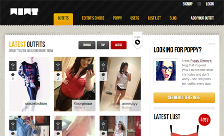 Это сразу становится понятно – здесь есть место и полненьким модницам, и любителям фотографироваться на фоне разобранной постели, и спорному педикюру. Даже если ты не умеешь ни одеваться, ни снимать себя на камеру, здесь можно чувствовать себя спокойно. Образы добавляют сами модники, уточняя, какие бренды они носят, какое у них настроение, где они сейчас находятся, чем заняты. На сайте Wiwt.com можно посмотреть рейтинги брендов, городов, настроений и блог основательницы соцсети – некой Поппи Динси. У проекта есть приложения для iOS и Android.