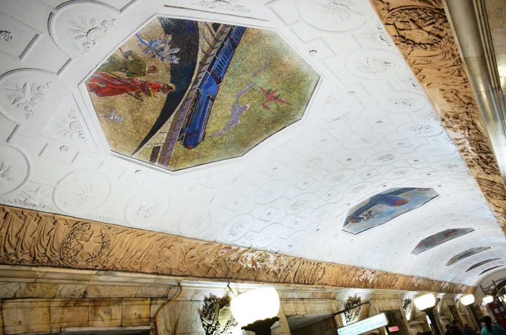 Московский метрополитен сейчас не только транспортное средство со своей удивительной историей, но ещё и музей. Вернее, целый конгломерат музеев, находящийся под землёй. Правда, тематические залы размещены на разных станциях. Но тем увлекательнее будет экскурсия — при желании каждый может составить квест, чтобы за одну поездку в метро посетить, например, все залы условного Музея воинской славы, Музея техники или Зоологического музея… Боле того, в Московском метро существует своего рода филиал Третьяковской галереи. Конкретно — того раздела, что посвящён искусству XX столетия. О скульптуре разговор ещё будет, а пока попробуем взглянуть на часть шедевров, выполненных в технике мозаики и панно.