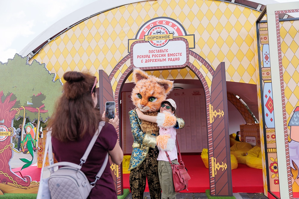 На «Русском поле» каждый мог побывать в гостях у сказки на площадке «Дорожного радио» с увлекательными семейными развлечениями, уютными зонами отдыха и эффектной фотоплощадкой. В фирменном шатре радиостанции гости окунулись в атмосферу знакомой с детства истории — встретились с зелёным дубом, учёным котом и загадочной русалкой! Посетители отдыхали, развлекались и играли с детьми в настольную игру «Башня» размером в человеческий рост.