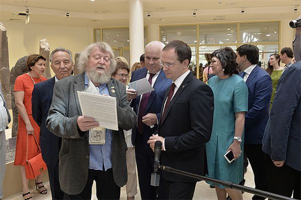 Министр культуры России Владимир Мединский попал на форум «с корабля на бал», когда работа была в самом разгаре. Уже состоялось официальное открытие мероприятия, и прошла работа нескольких секций. В том числе «архивариусы истории» страны обсудили тему «Музеи и культурные индустрии — стратегии лидерства», в которой принял участие советник президента России по вопросам культуры Владимир Толстой. Именно музейщики, что называется, обжили стены нового музейно-культурного комплекса, проведя здесь целый день в дискуссиях.