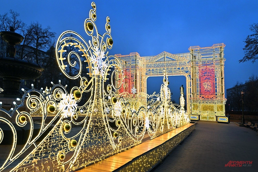 Бульварное кольцо и пешеходные зоны в центре украсили световыми тоннелями и арками, протянувшимися на сотни метров. На Тверском бульваре можно пройти через динамически переливающиеся конструкции, наполненные миллионами огней, а рядом со зданием правительства Москвы расположена огромная световая арка высотой около 20 метров и длиной более 60 метров
