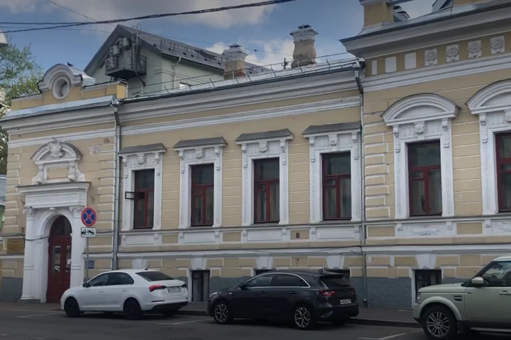 А затем действие переносится на улицу Воронцово поле — не слишком далеко, эта улица идет перпендикулярно Подсосенскому переулку. В кадре — дом 12, бывшая городская усадьба Ксении Васильевны Капцовой, супруги купца первой гильдии Сергея Александровича Капцова; здание 1880-х годов постройки.
