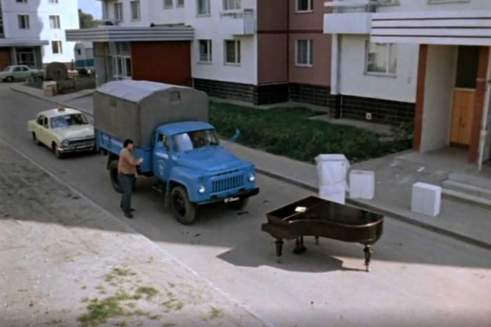 В самом начале фильма показан переезд Катиной семьи на новую квартиру. Едут они целым караваном — впереди грузовик с мебелью и Катей, которая держит фикус, за ним — такси с мамой Кати и её отчимом (его играет Евгений Герасимов). Откуда они едут — непонятно, а в первом кадре на заднем плане видны опоры Крымского моста в Москве.