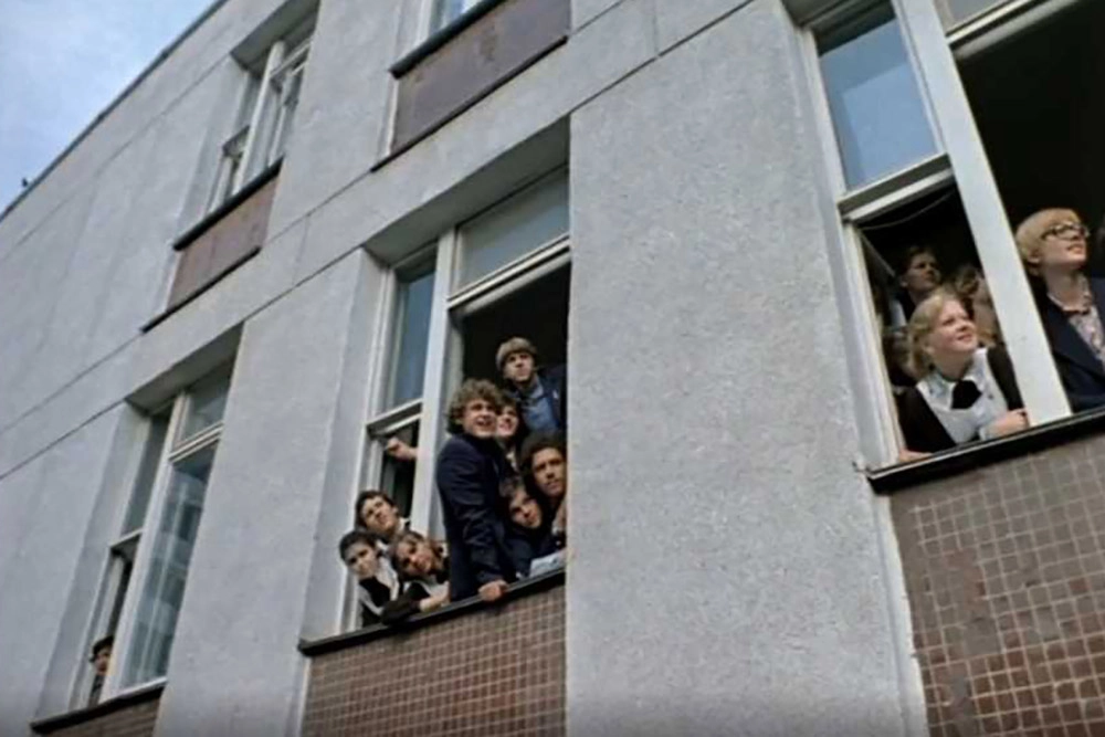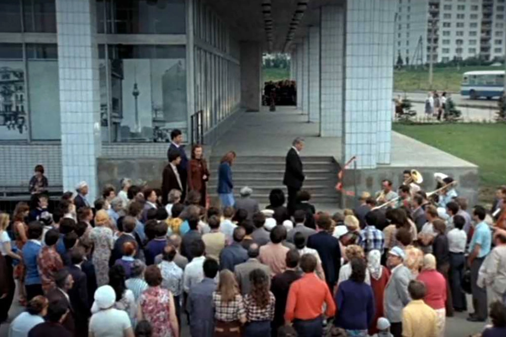 И на первом уроке, который показывают зрителям, заодно происходит ещё она забавная кинематографическая телепортация — ученики выглядывают в окна школы в Ясеневе, чтобы посмотреть на открытие универмага в Теплом стане, на улице Академика Варги, дом № 8/1; расстояние между ними — около 5 км. И любопытно, что тот универмаг вовсе не требовалось открывать — это был знаменитый «Лейпциг», один из нескольких московских магазинов советского времени, названных в честь городов стран соцблока. «Лейпциг» работал в Теплом стане с 1965 года и был достаточно популярным среди москвичей и гостей города.
