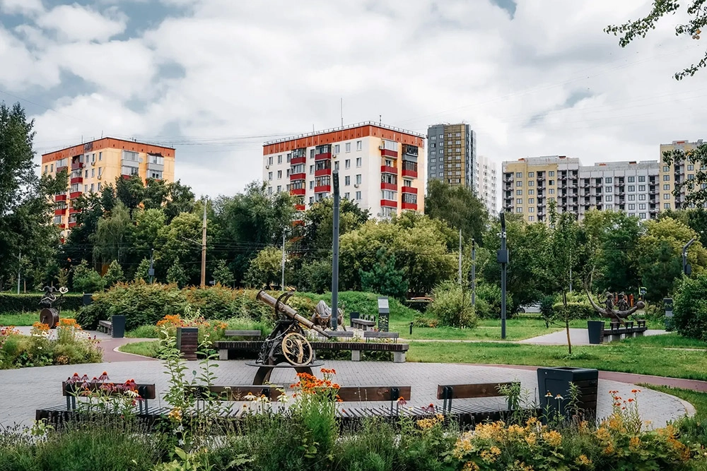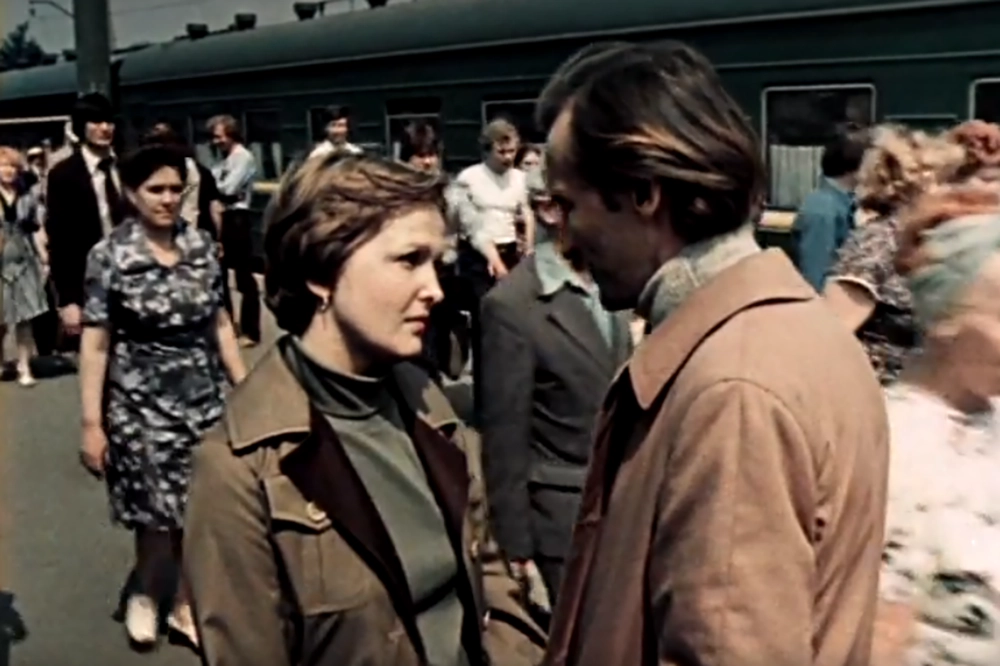 Широкая панорама показывает зрителям, как выглядел этот район в 1980 году. За спиной героини Мирошниковой — другие новостройки по Енисейской улице, на момент съемок они совсем свежие, дата постройки — самый конец 1970-х. Любопытно, что «дом» Ромы тоже виден на этом кадре; он справа и имеет адрес Енисейская, 25 — именно к нему приезжает семья мальчика.