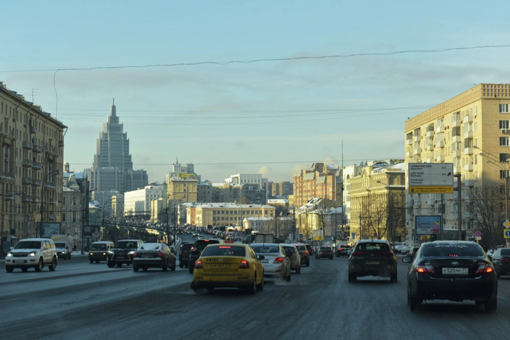 В следующем кадре — Садовая-Сухаревская улица, причем в сторону Самотёчной эстакады.