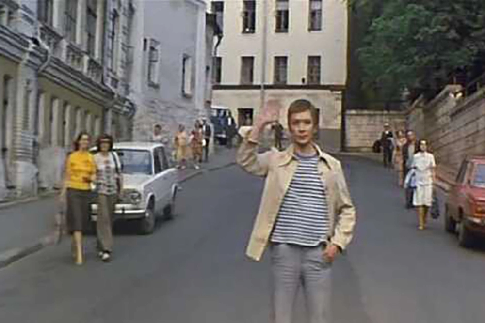 Сам Хохловский переулок — тоже очень красивое место, подходящее для нужд кино. И не случайно именно здесь Кеша прощается со своими воспитанниками, которых полюбил всей душой. Но их расставание вынужденное — дети уезжают на летнюю дачу, а главный герой картины отправляется в армию в пограничные войска. Кстати, эта сцена снималась уже после призыва Проханова на службу — его успели обрить налысо, поэтому здесь у него не свои волосы, а парик.