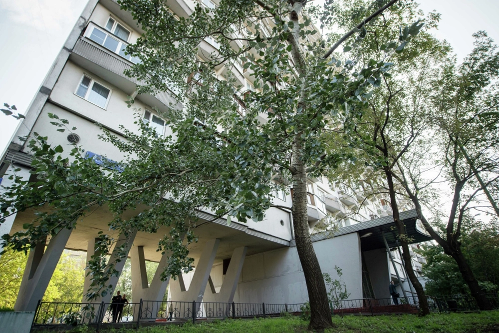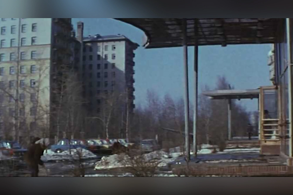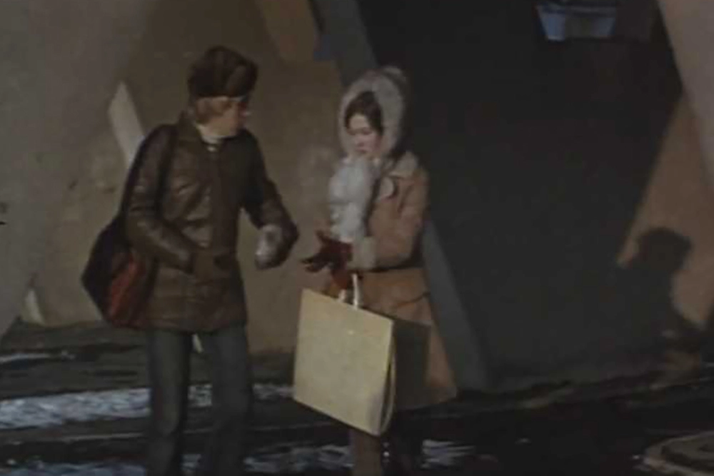 «Ножки» дома тоже показывают — именно между ними проходит девушка со своим кавалером. Имени у этой девушки нет, её называют Незнакомкой, а сыграла её Марина Матвеенко, про которую мало что известно — в её фильмографии лишь 4 фильма середины 1970-х, среди которых эпизод в «Большом космическом путешествии»; вроде бы она сейчас живет в литовской Клайпеде.