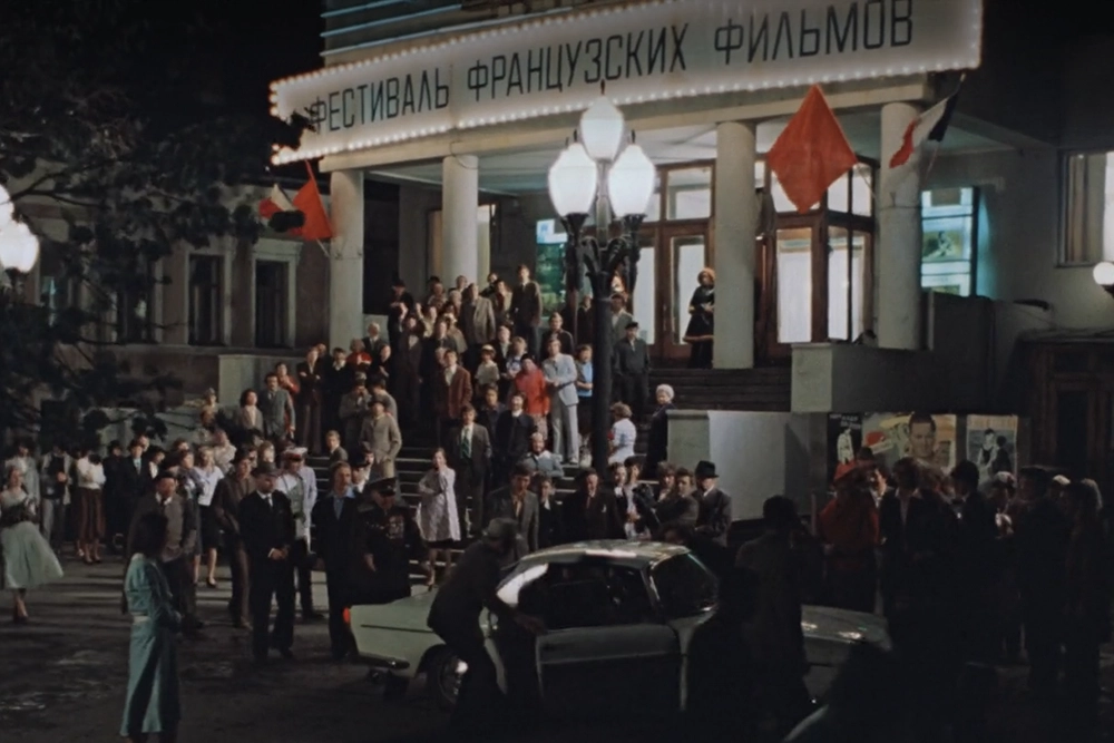 В тот же день Катя и Люда попадают на фестиваль французских фильмов, который проходит в тогдашнем Доме кино, который располагался на Поварской улице д. 33, стр. 1. Маршрут девушек не слишком понятен — от площади Маяковского они шли вниз по улице Горького (сейчас — Тверская), а в Дом кино надо было двигать по Садовому на юг.