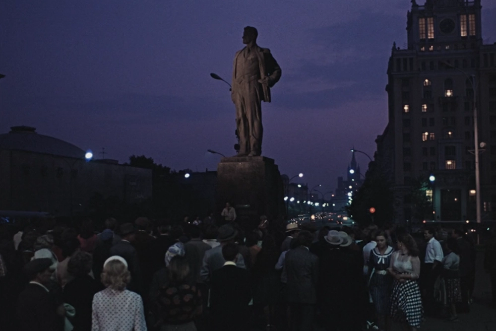 Гуляя по Москве 1958 года, Катя и Людмила оказываются у памятника Маяковскому, где читает стихи поэт Андрей Вознесенский (он сам сыграл молодого себя). Кадр темный — так Меньшов замаскировал автомобильный тоннель под площадью, которого в том году ещё не было, её открыли только в 1960-м.