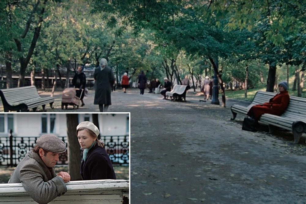 Во второй серии просителем оказывается уже постаревший Рудольф — он просит Катю помирить его с дочерью, которая не простила отцу предательства. Оба раза Катя и Рудольф разговаривают на скамейке неподалеку от усадьбы Михаила Нарышкина — сейчас там расположен Московский музей современного искусства (адрес — Гоголевский бульвар, 10, строение 1).
