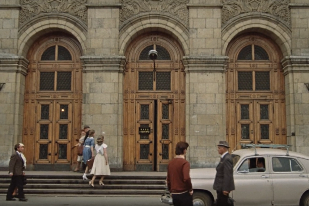 Героини спускаются и под землю — московский метрополитен был развит и в конце пятидесятых. Для Людмилы станция «Новослободская» на Кольцевой линии стала знаковой — там она познакомилась с хоккеистом Сергеем (Александр Фатюшин). Саму станцию можно опознать по характерным витражам на пилонах, которые сохранились и в наше время.