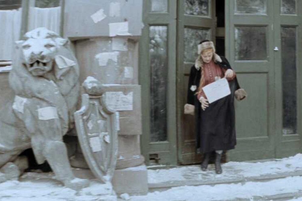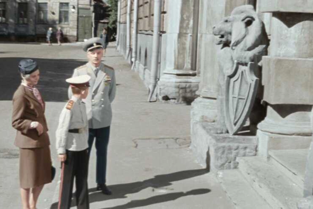 Первая сцена с этим домом появляется в самом начале «Офицеров» — именно там, у статуй львов, Алексей спасает Любу от налетчиков, а она его благодарит старорежимным «мерси». Туда же он прибегает с березовым поленом — платой за проход на концерт, на котором играют Моцарта. Этот «дом со львами» — примечательный.