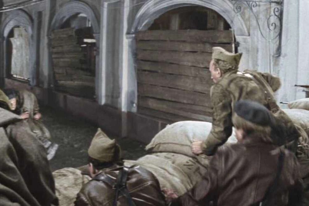 Испанские бои во время Гражданской войны 1936-39 годов снимались не в Испании, а в самом центре Москвы — это угол Богоявленского переулка и улицы Ильинки, рядом с нынешним ГУМом, а в кадре можно увидеть Теплые торговые ряды, построенные в XIX веке.