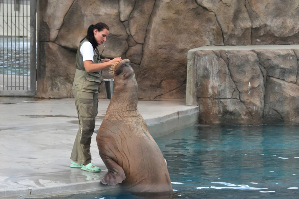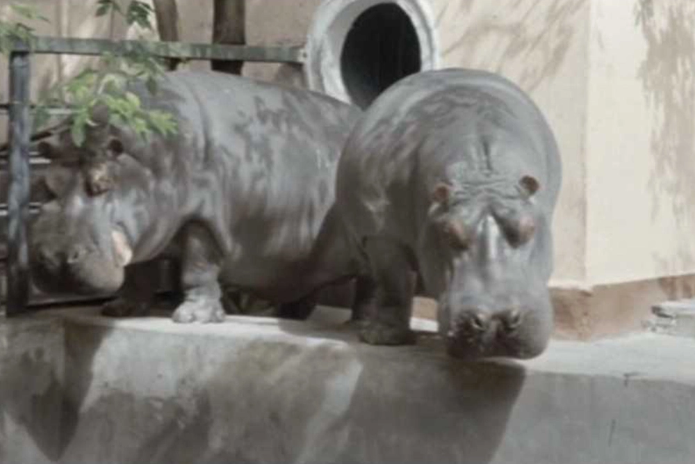 Иван, знающий, по мнению деда, что такое воинская дисциплина, оказывается не в училище, а в зоопарке, где смотрит на бегемотов. Зоопарк это — московский, бегемоты там есть и сейчас, только живут они в другом месте. А в этом вольере в наше время расположились моржи.