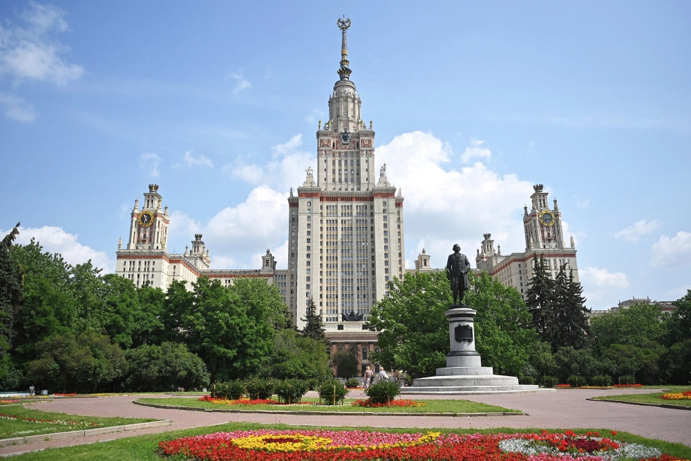 Внимательные зрители и тогда могли увидеть в одном из кадров главное здание МГУ — правда, не целиком, а лишь нижнюю часть, без узнаваемого силуэта, ставшего одним из символов столицы.