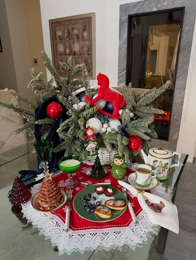 Яна Рудковская поддержала дух праздника, устроив для семьи и друзей в Сочельник трапезу в русском стиле.
