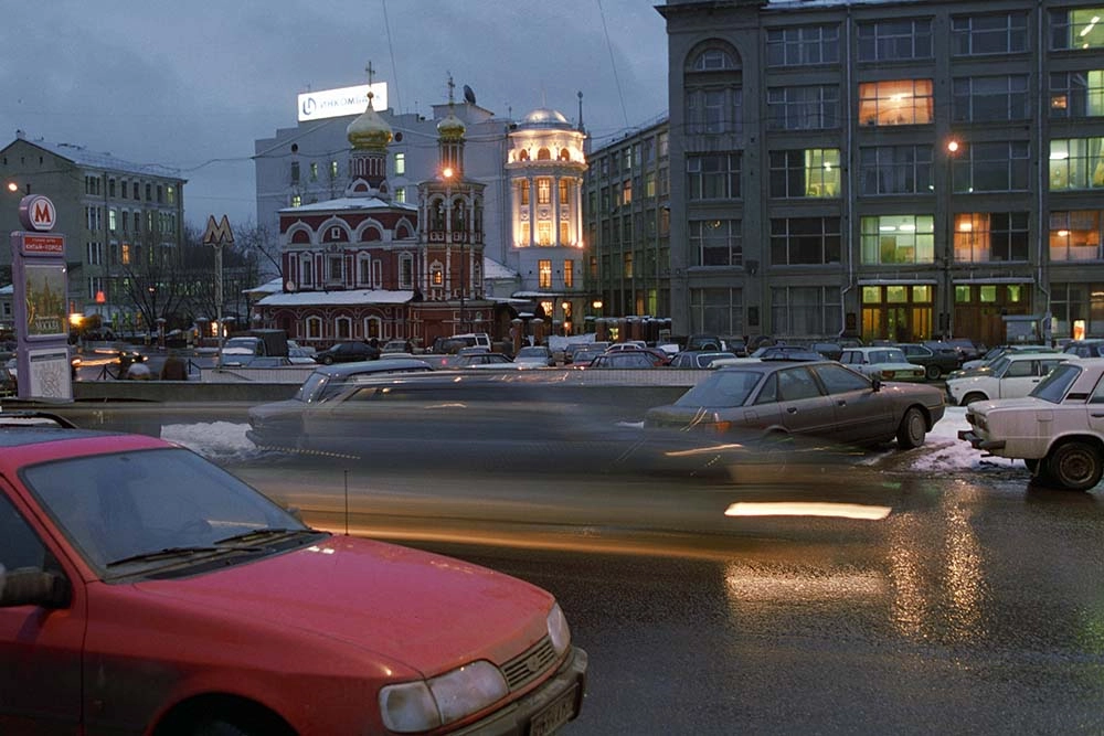 Юрий Деточкин (Иннокентий Смоктуновский) возвращается из «командировки» (на самом деле он продавал краденную машину) и в самом начале улицы Варварки (тогда — улица Степана Разина) встречает троллейбус, которым управляет его невеста Люба (Ольга Аросева). За спиной Деточкина можно увидеть церковь Георгия Победоносца на Псковской горе (она сохранилась и сейчас), а за ней — строящуюся гостиницу «Россия». Эту гостиницу начали строить в 1964 году, открыли в 1967-м, закрыли в 2006-м, а в 2010-м снесли; сейчас на её месте — парк «Зарядье».