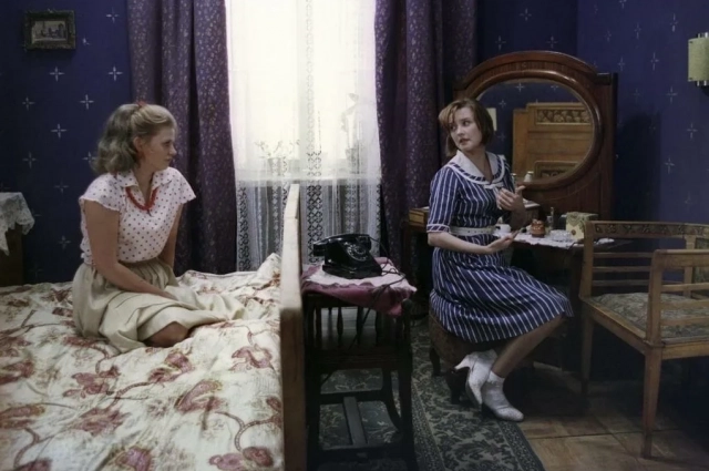 Платья Людмилы и Катерины производят впечатление одежды, которую модели демонстрируют на подиуме. Да, когда они играли в профессорских дочек, им нужно было выглядеть соответствующе. Но где взять-то роскошные платья? Как сделать такие прически? Девушки ведь живут в общежитии, лишних денег нет. Тося попроще. «Сестры» же в течение двух серий, знай, меняют наряды. Хотя платья и костюмы в советское время тоже нужно было добывать, изощряясь, шить у портних или в ателье. Художник по костюмам в фильме Жанна Мелконян сделала невозможное — в отличие от мужских ансамблей, женские выглядят вне времени. Особенно, если учесть, что уже лет двадцать в России не спадающий бум на винтаж.