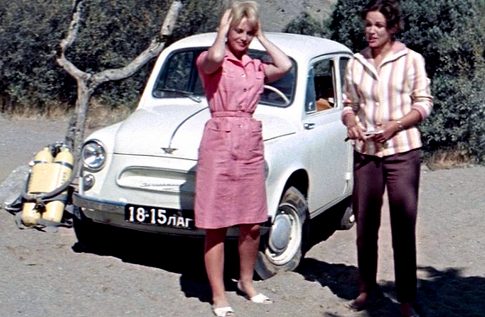 Ещё одними «главными героями» картины стали две машины. Мужчины приехали на берег Черного моря на автомобиле «Волга ГАЗ-М-21В» одного из первых выпусков; по сюжету этот автомобиль принадлежал Сундукову. Ну а девушки добрались до места отдыха на «Запорожце» ЗАЗ-965 — том самом, что в народе прозвали «горбатым». Их автомобиль, кстати, был поновее мужского — первые «Запорожцы» этой модели сошли с конвейера 1 октября 1960 года, а стоили они много дешевле двадцать первой «Волги» — 1800 рублей против 5600. Впрочем, «Волги» в советское время никак не были народными машинами — эту нишу занимали «Москвичи», «Жигули» и, конечно, «Запорожцы» .