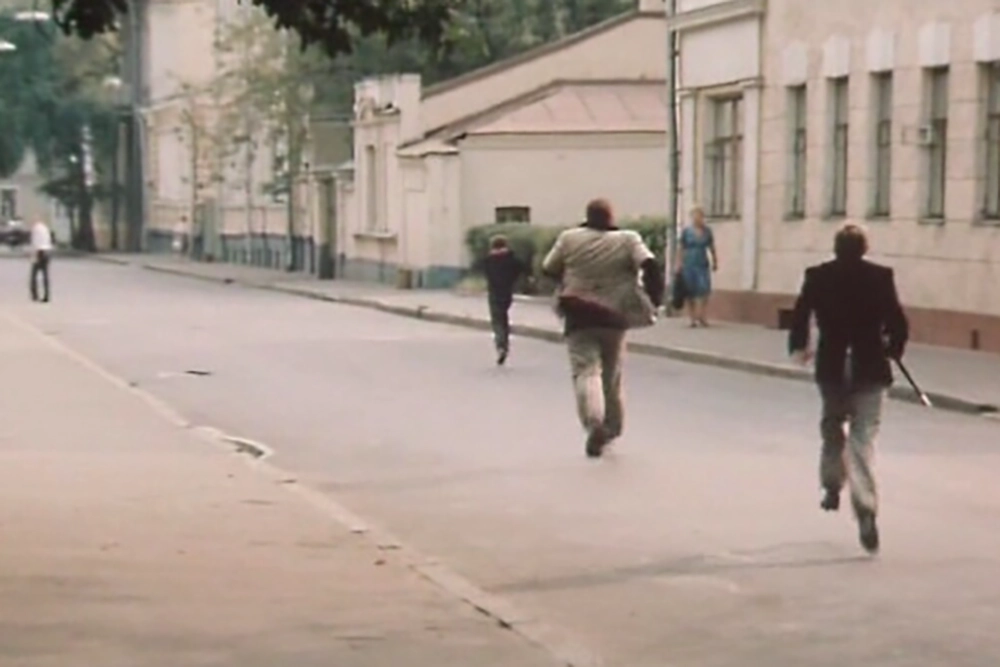 Сцен, где Коля бегает от космических пиратов, в фильме несколько — и в одной из них эта погоня происходит в том же Вспольном переулке.