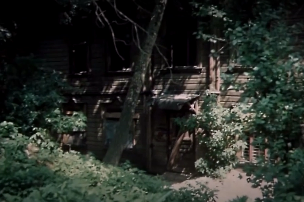 Раньше он стоял напротив неё, на другой стороне переулка; во время схемок дом был нежилым, его предназначали к сносу. Впрочем, он прослужил людям ещё около 20 лет и был снесен в нулевые, а на его месте был построен бизнес-центр (адрес — 2-й Волконский переулок, 10). Сам подвал с колоннами и комната с машиной времени — это, разумеется, студийные декорации.