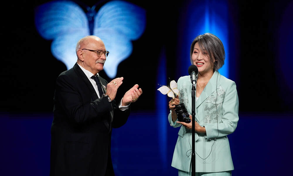Глава союза кинематографистов России, режиссер, вдохновитель и главный идеолог первой открытой евразийской кинопремии «Бриллиантовая бабочка» Никита Михалков вышел на сцену, чтобы вручить ключевые награды — «За вклад в мировой кинематограф» и «Лучший фильм».
