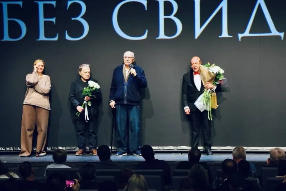 Закрытый зрительский показ прошел 13 февраля. На фото, которые спустя пять дней опубликовала Татьяна Михалкова, можно увидеть не только ее супруга Никиту Михалкова с их детьми Анной, Надеждой и Артемом и внуками, но и коллег режиссера — актера Михаила Пореченкова, драматурга Александра Адабашьяна, режиссера Сергея Урсуляка.