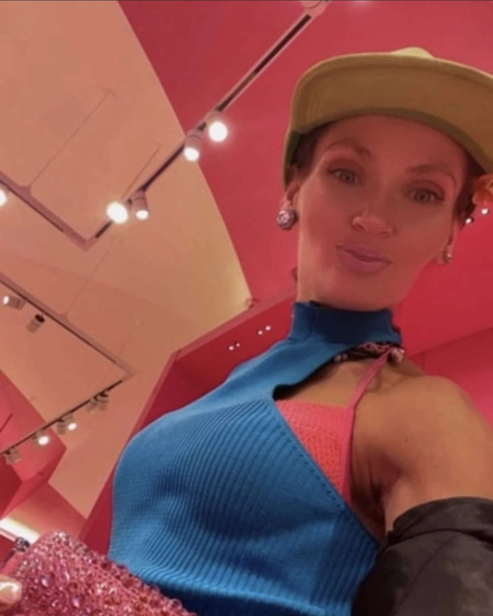 На девушке была синяя яркая кепка, сине-золотое в пайетках платье, неоновые блестящие леггинсы и такие же сияющие, но уже серебристые туфли на высоченном каблуке. Столь «скромный» образ Света, конечно же, дополнила десятком разноцветных браслетов и шейных украшений.